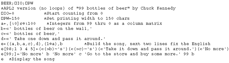 98 bottles of beer on the wall, 98 bottles of beer. It is popular to sing on road trips, as it has a very repetitive format which is easy to memorize and can take a long time when families sing. 99 bottles carries over 1,000 brews (ale, lager, hard cider, mead) from 50 countries. Welcome to 99 bottles of beer. This website holds a collection of the song 99 bottles of beer programmed in different programming languages. (2) 99 bottles is the best beer store in washington state, according to the king 5 evening magazine 2009 viewer poll. More images for 99 bottles of beer on the wall » 99 bottles of beer on the wall, 99 bottles of beer on the wall join authorsden ! When did 99 bottles of beer on the wall come out? How to say no more bottles of beer? For more detailed information refer to historic information. Why are there no more bottles of beer on the wall? Actually the song is represented in 1500 different programming languages and variations.